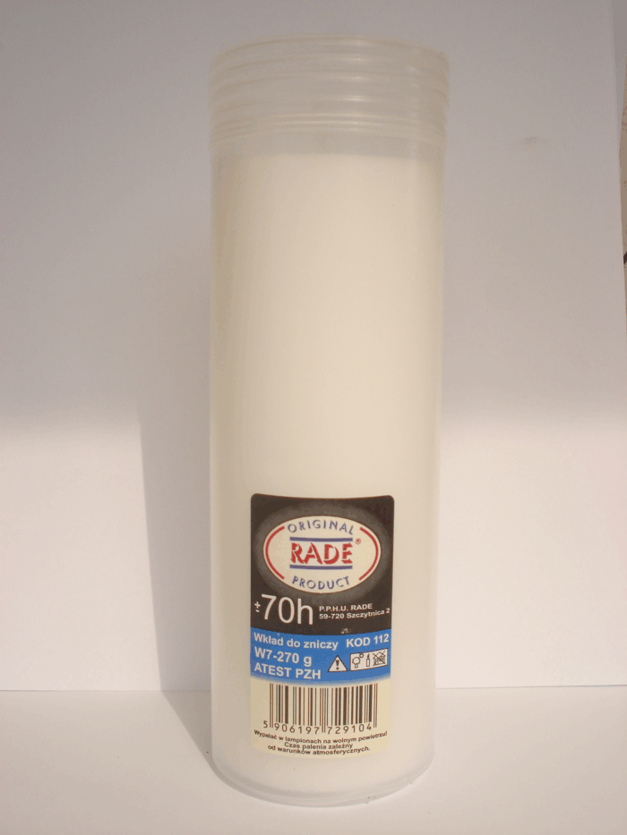 Posiadamy w ofercie następujące wkłady do zniczy produkowane przez firmę RADE: